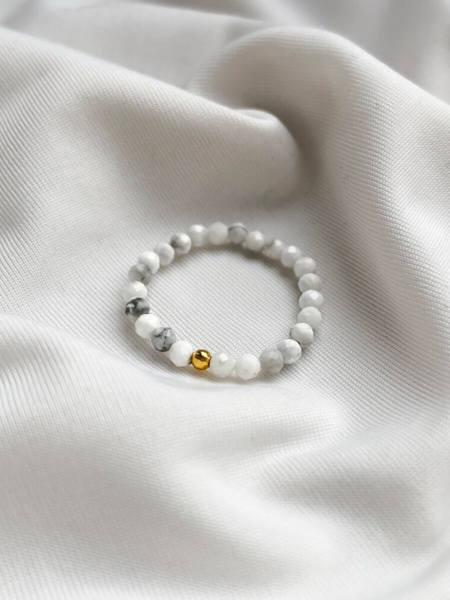 Uniwersalny magnezyt możesz łączyć z każdym kolorem, zyskując nieskończone możliwości zestawiania magnezytu z najróżniejszymi outfitami i zdobieniami. Złoty hematyt dodatkowo uszlachetnia ten i tak gustowny pierścionek, sprawiając, że jeszcze bardziej wyróżnia się na tle biżuteryjnych dodatków. Magnezyt niczym perły jest kamieniem naturalnym, który doskonale odnajdzie się w szkatułce każdej kobiety.